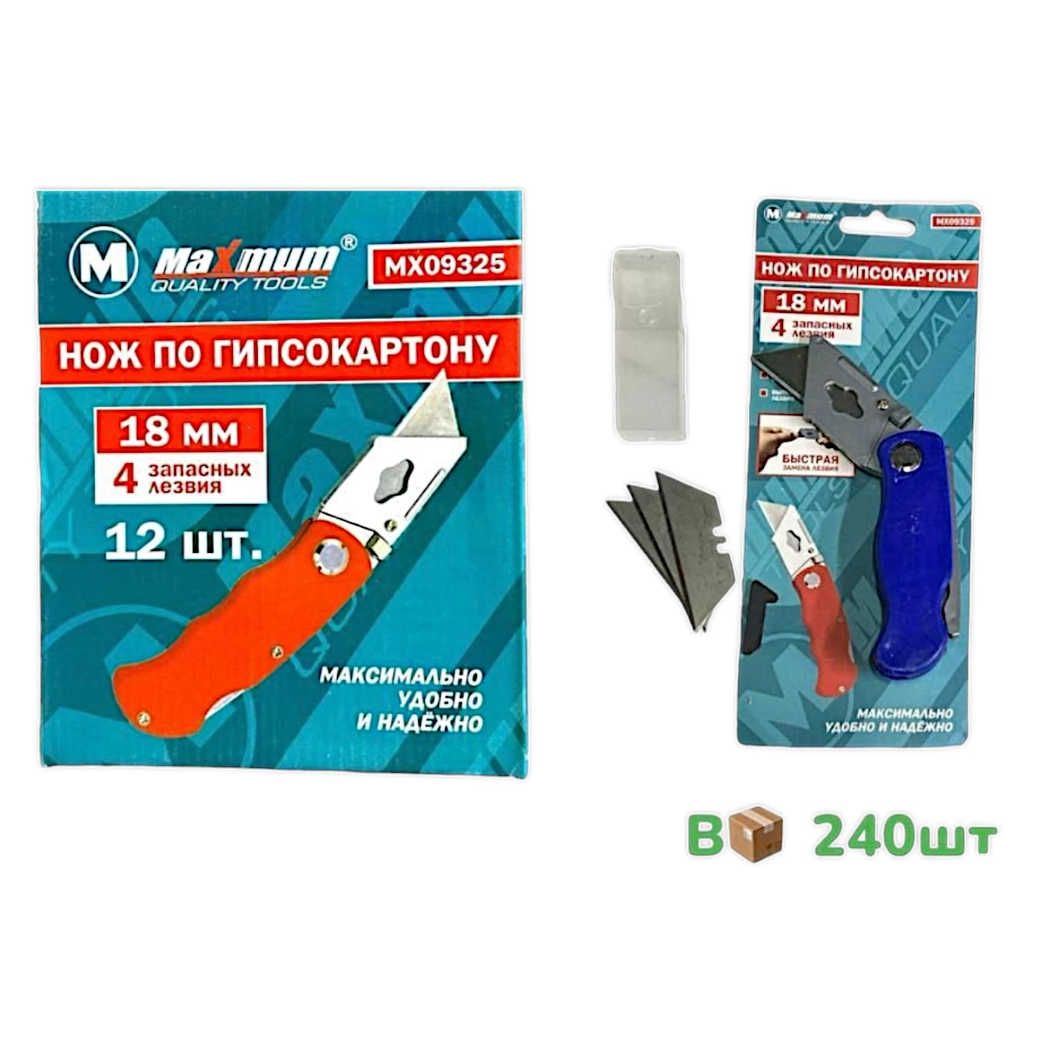 Нож по гипсокартону с запасными лезвиями — это удобный складной инструмент с рычажной кнопкой и системой Quick Change для быстрой смены лезвий.