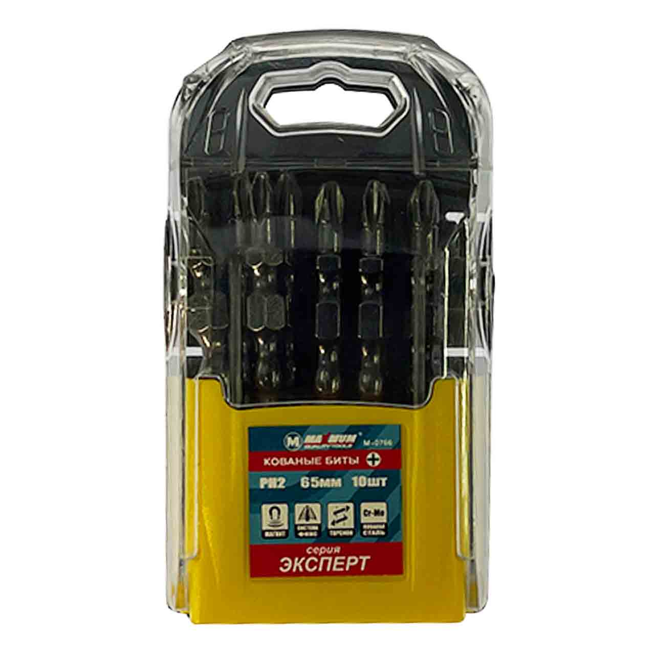 Набор бит кованых PH2, 65 мм, 10штук, "MAXIMUM" M-0766 из серии "Эксперт" для ручного и механизированного инструмента изготовлена из высококачественной кованой стали.