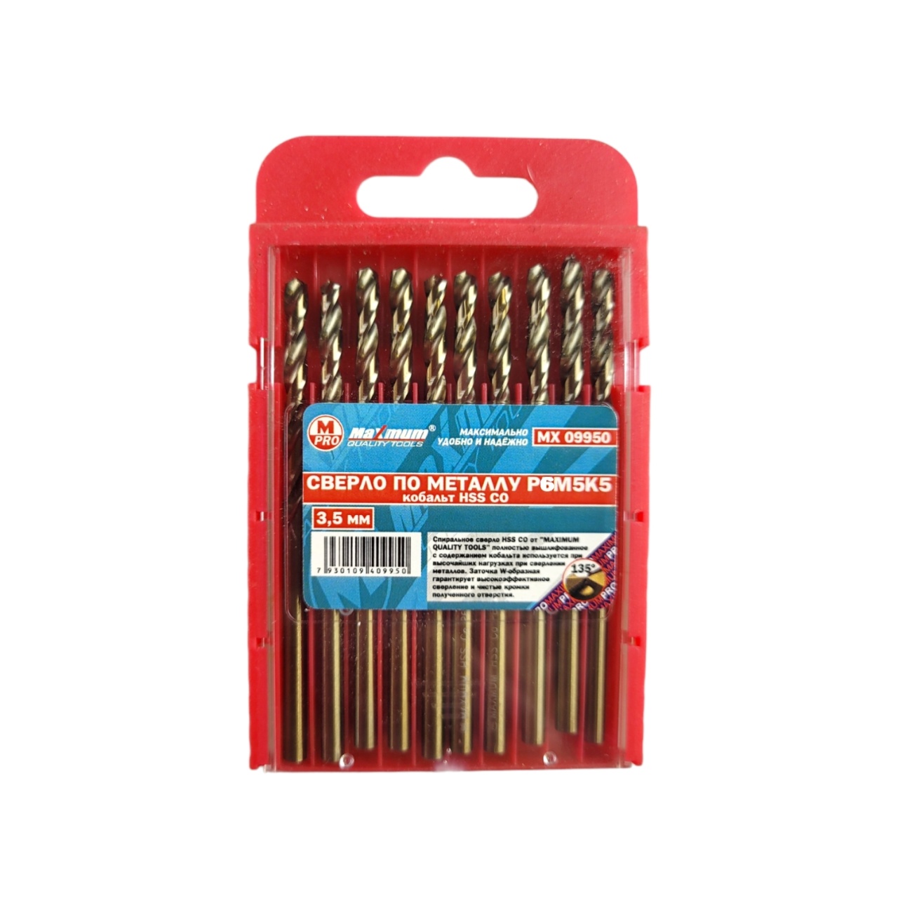 Профессиональные кобальтовые сверла 3,5 мм HSS от бренда "MAXIMUM QUALITY TOOLS" имеют цилиндрический хвостовик для дрели и шуруповерта.